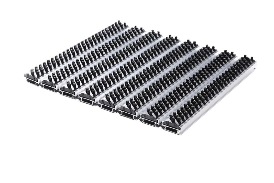 De mat is leverbaar met diverse inlages, waaronder borstels, naaldvilt, rubber en schoonloop, zodat de mat precies aansluit op de gewenste toepassing. De borstels schrapen vuil en modder effectief van schoenzolen, wat bijdraagt aan een schone omgeving. De achterzijde houdt de mat stabiel op de ondergrond, zelfs bij dagelijks gebruik. Deze projectmat is geschikt voor zowel binnen als buiten gebruik, bijvoorbeeld in entrees of overdekte buitenruimtes.